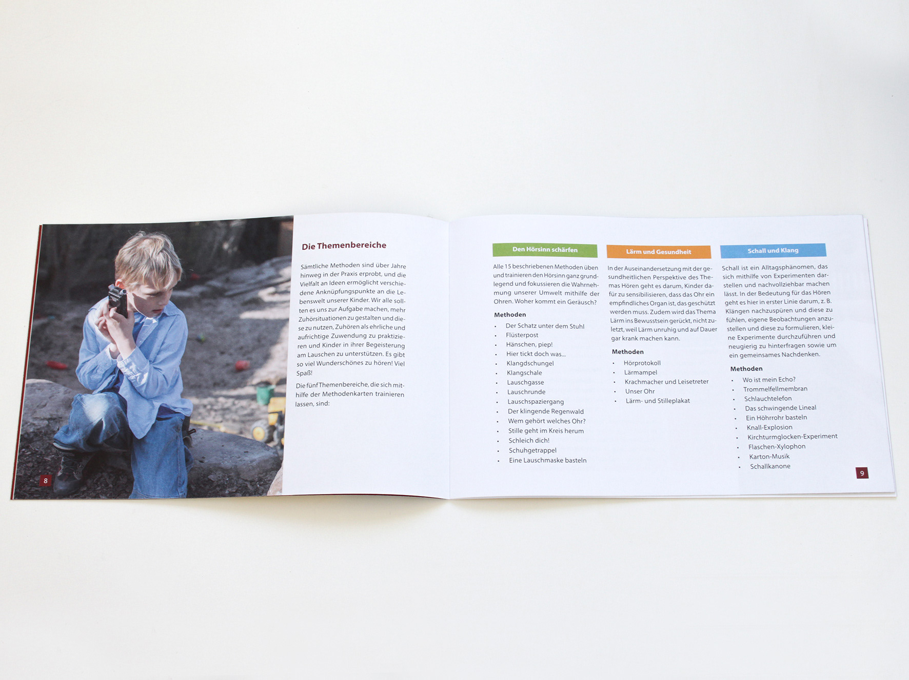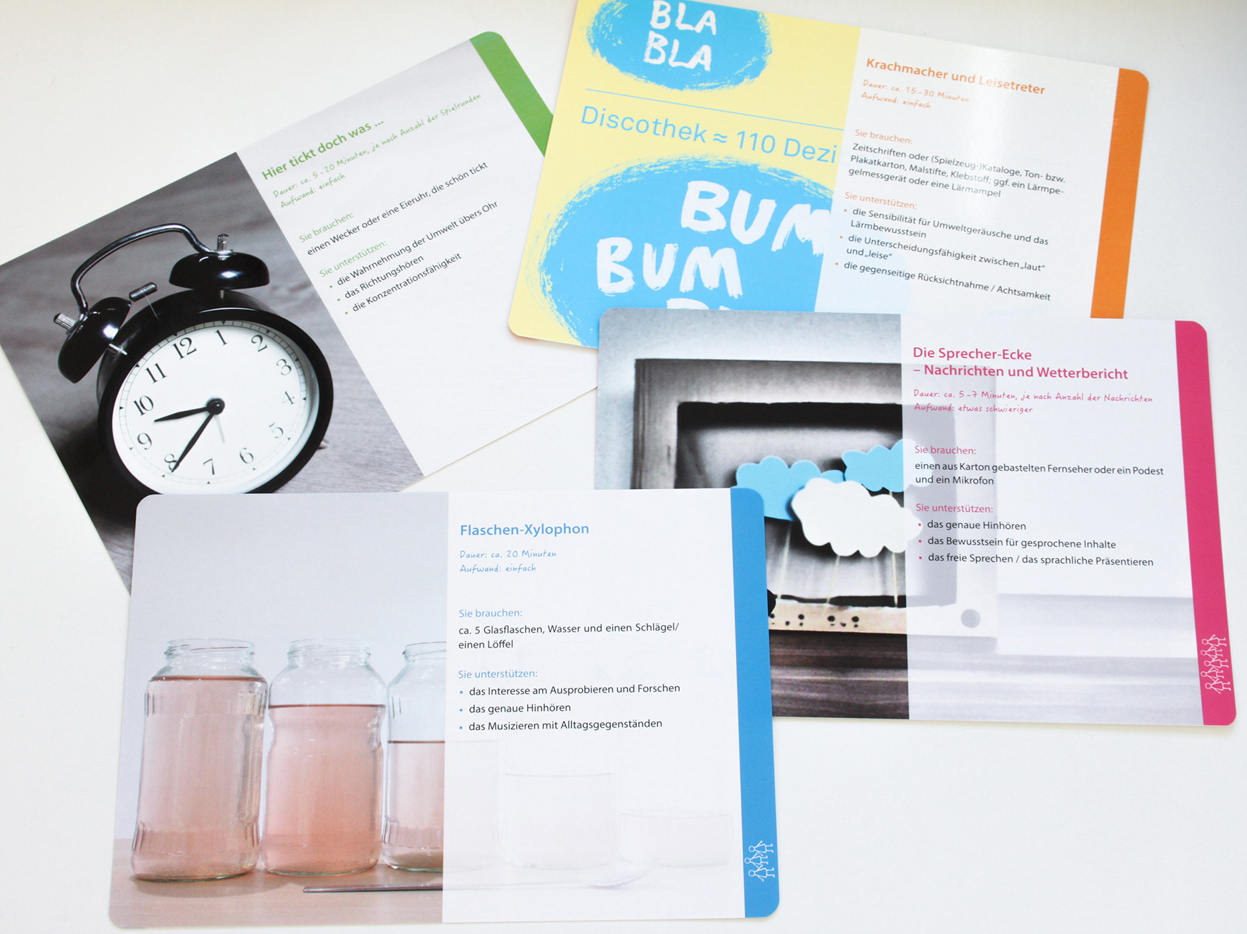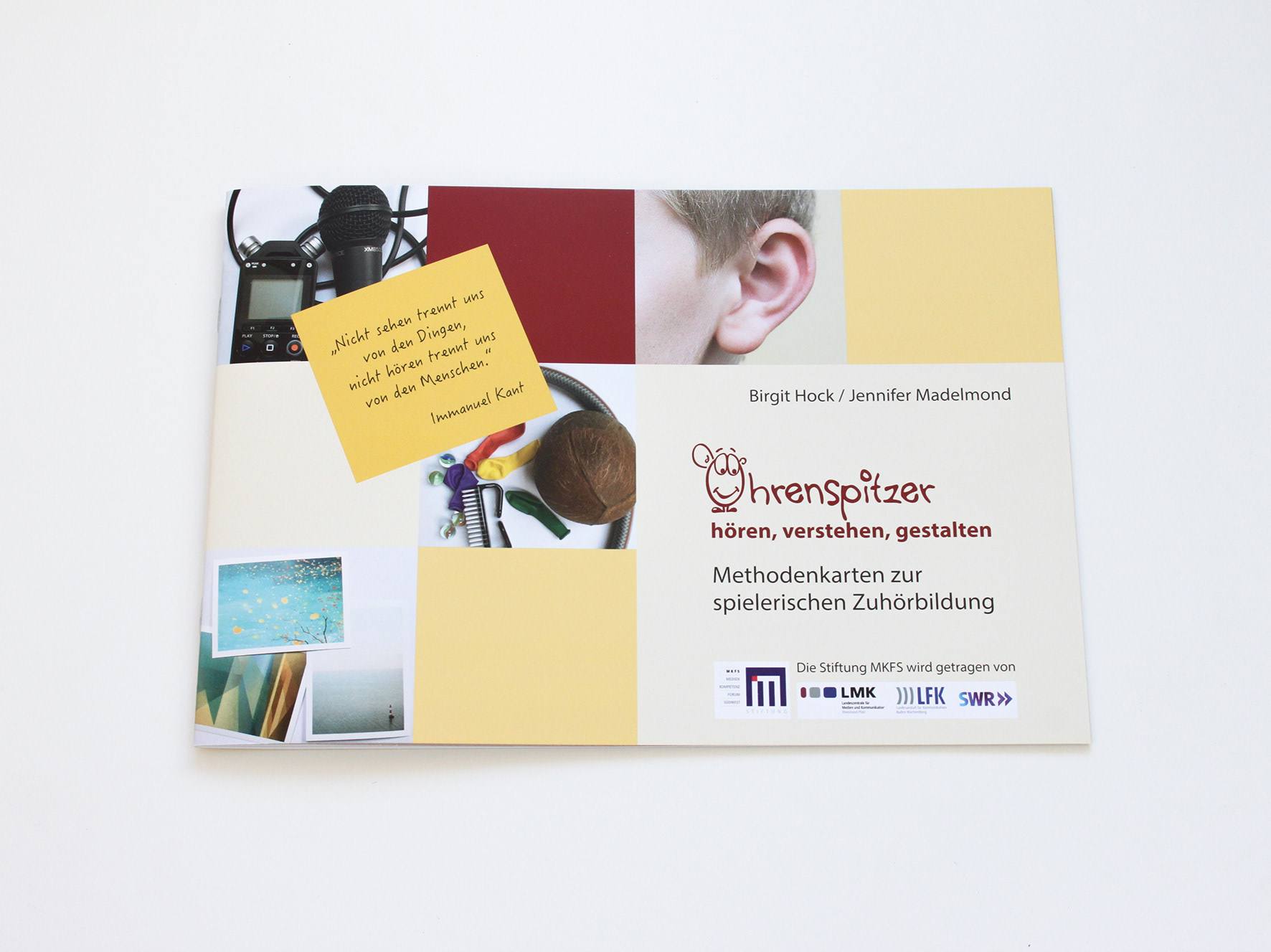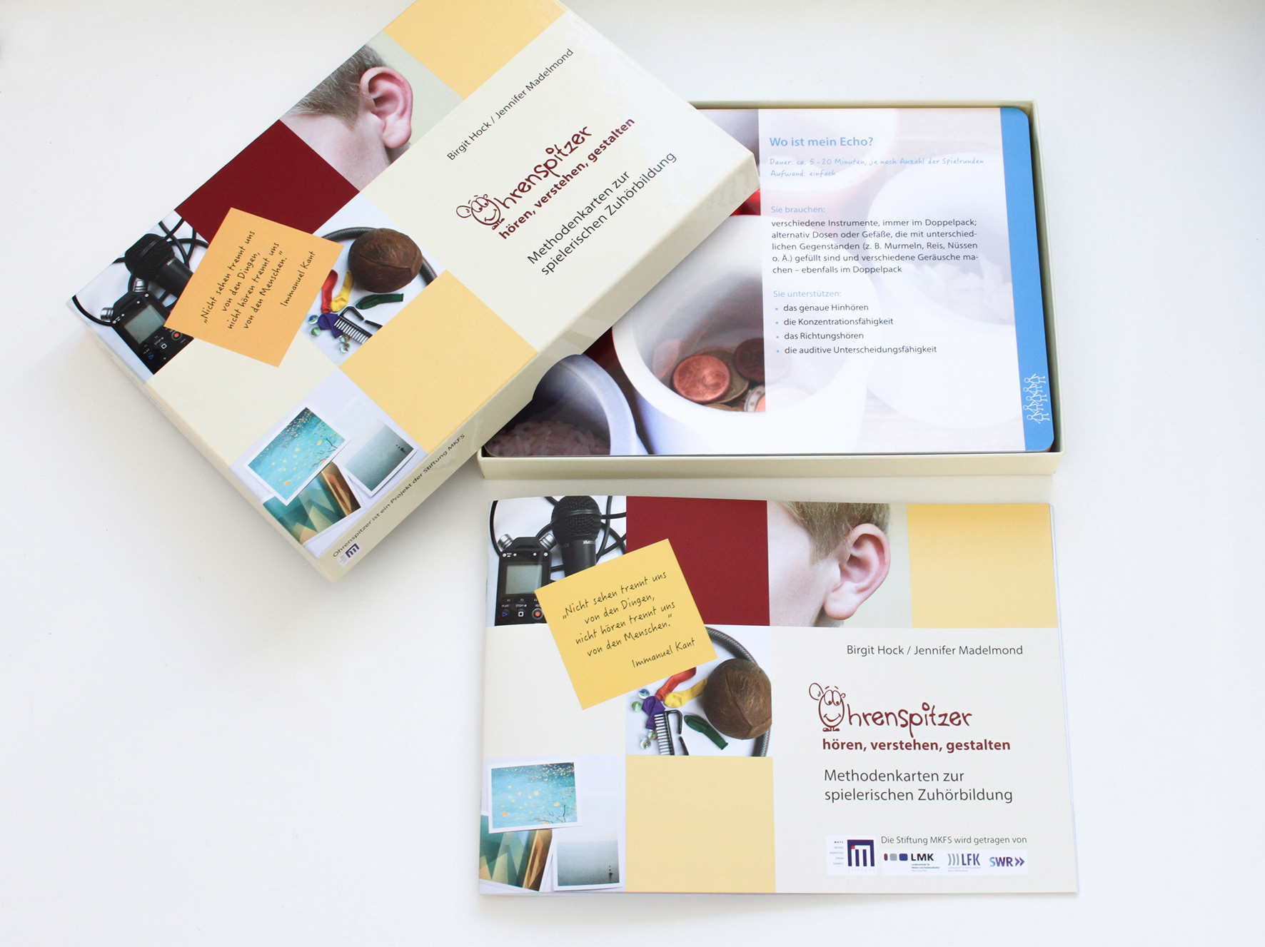 Konzeption und Gestaltung einer Methodenbox für die Zuhörbildung und Konzentrationsförderung in Kita und Grundschule in Zusammenarbeit mit Birgit Hock (Stiftung MKFS). Die Box besteht aus 45 Karten, unterteilt in fünf Themenbereiche und einer informativen Broschüre.